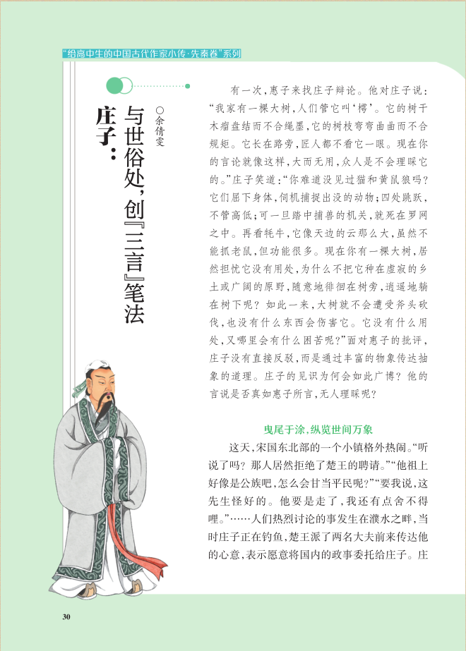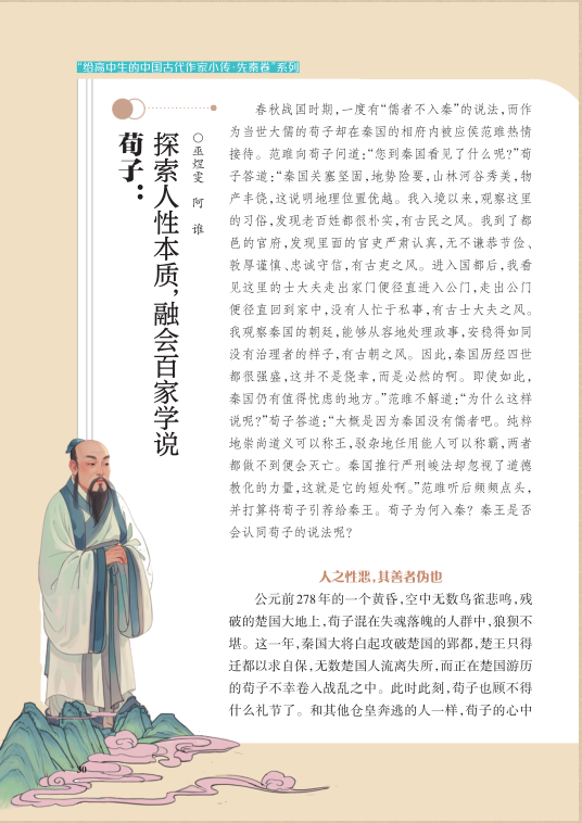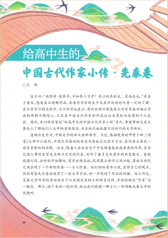 “知人论世”是学习中国古代文学作品的重要途径,不少高中生不够了解古代作家而对相应的文学作品兴趣平平。《高中生之友》“给高中生的中国古代作家小传系列·先秦卷”系列文章以小传的形式,向读者展示中国古代作家的大致生平与重要经历,使其在领略古代作家风采的同时增强文化素养。